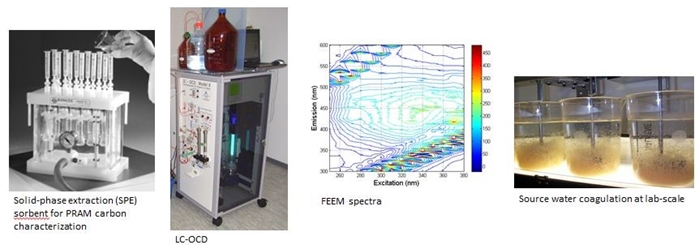 The polarity rapid assessment method (PRAM) characterizes the polarity of DOC using several solid-phase extraction (SPE) sorbents. Liquid chromatography – organic carbon detection (LC-OCD) fractionates organic carbon into about 10 classes of compounds. Fluorescence emission-excitation matrices (FEEM) is being used to evaluate carbon character. These techniques enable us to evaluate potential coagulant dosing needs and the possibility of harmful disinfection by-product formation (DBP) potential during drinking water treatment.