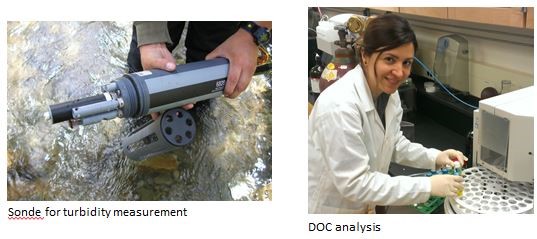 Automated (real time) turbidity data collected using water quality Sondes are being analyzed in relation to DOC/DON analysed using combustion catalytic oxidation.