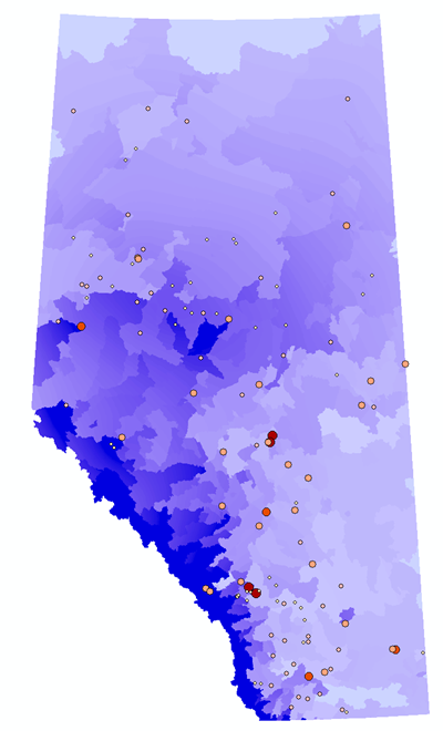 Another major research theme is directed at linking the conditions and disturbance pressures in provincial source water regions to municipalities and municipal drinking water treatment. This research focuses on a broad range of small-medium-large sized communities involving analysis of likely risks from variable source water conditions to municipal drinking water systems. This research is being completed in 3 tiers reflecting increasing resolution in analysis of linkages of these municipalities to source water conditions.